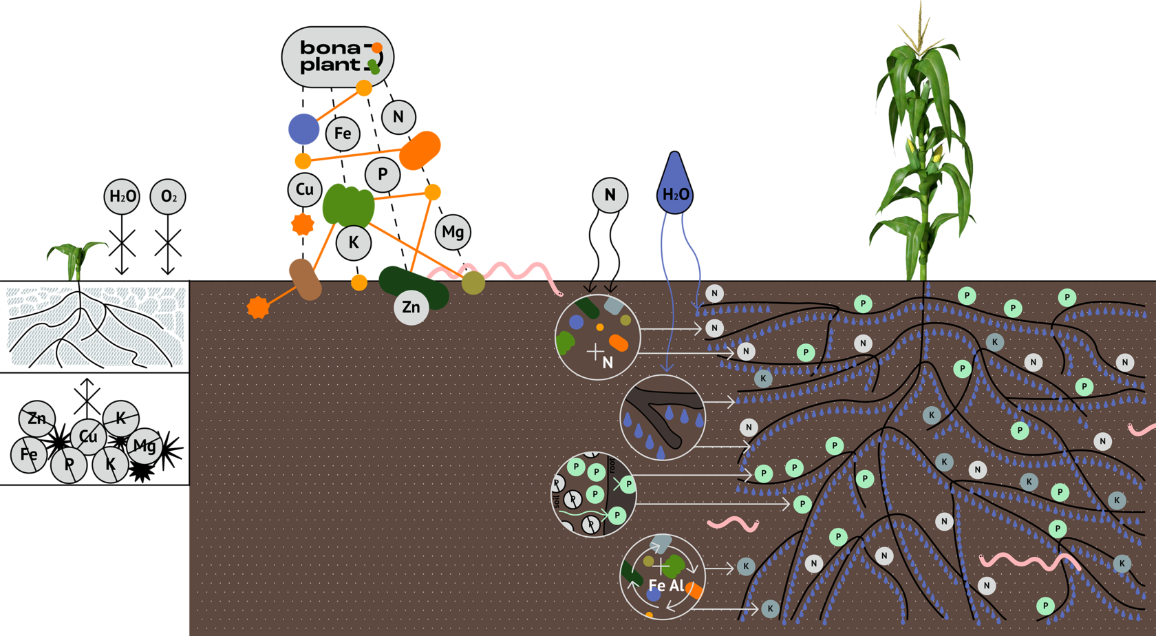 In addition to bacteria, Bonaplant fertilizers also contain their excretion products, which form organic and mineral acids, alkalis, enzymes, polysaccharides, phenolic compounds, vitamins, auxins, gibberins, stimulants, etc.